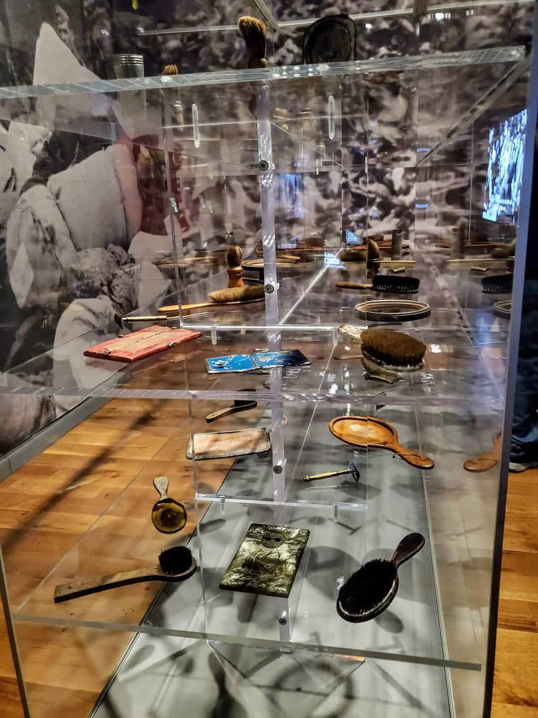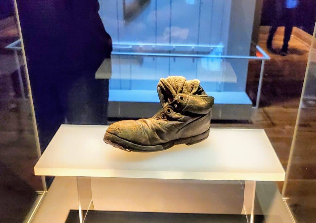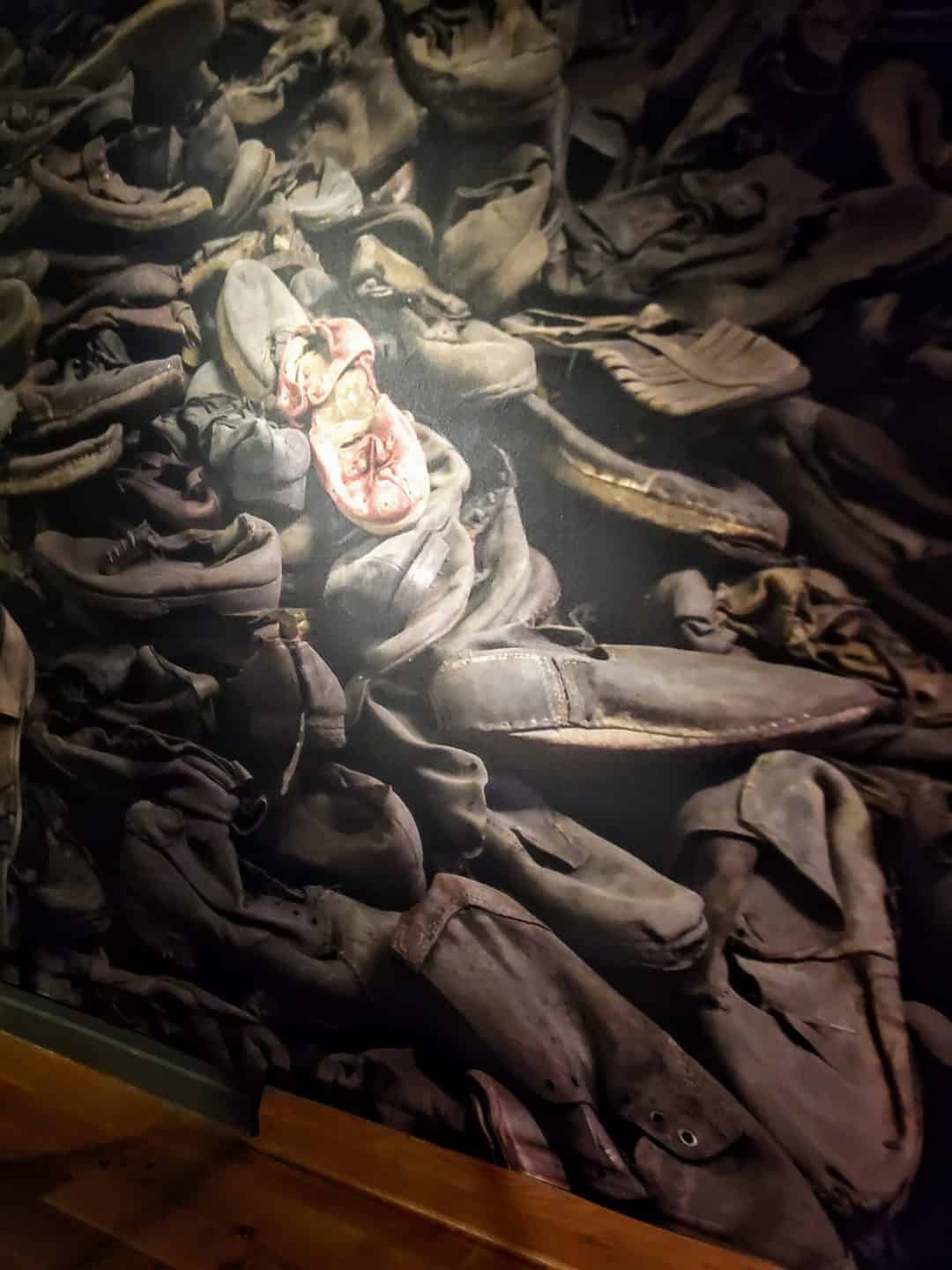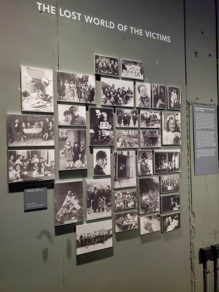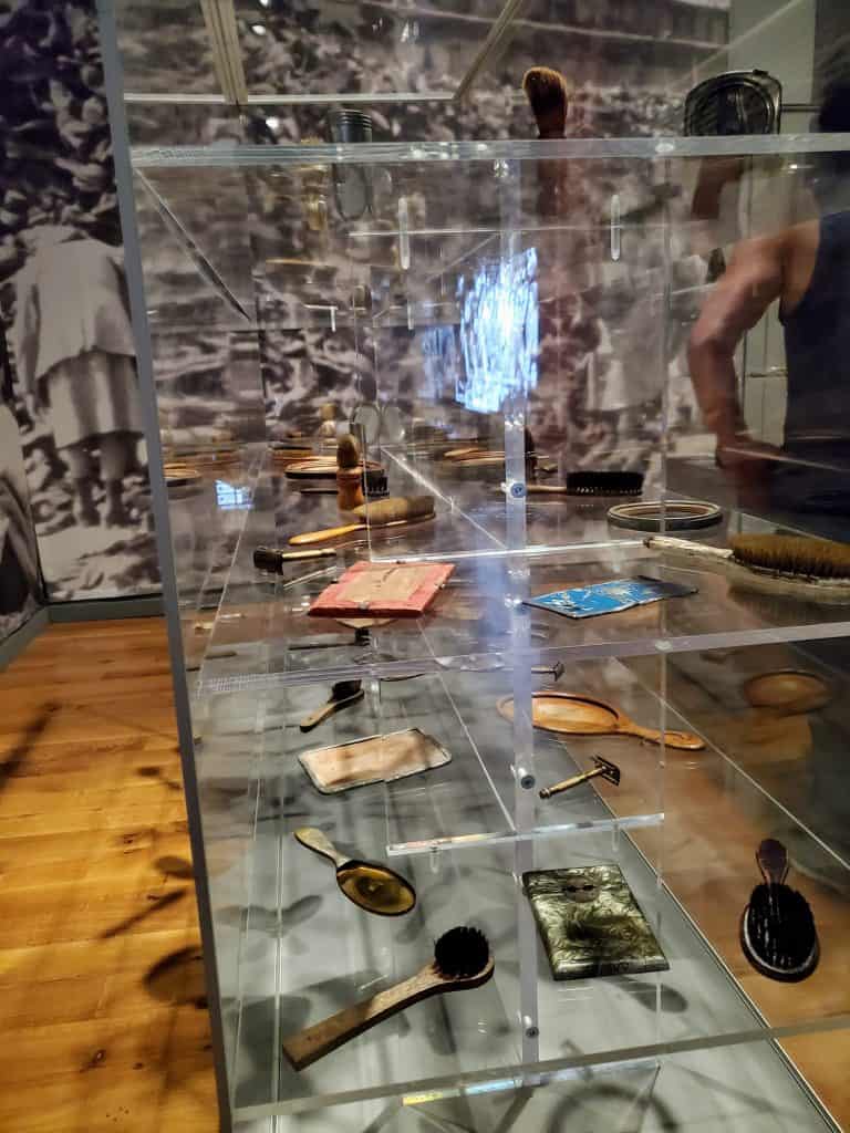 The video played of men who were Sonderkommandos at Auschwitz. These men, who were Jews themself, had the horrific job of moving the dead bodies to be cremated. You move on to several display cases that share items found after the liberation of Auschwitz. The shoes of children, tiny spoons, tin mugs and bowls, reading glasses and more remind you that everything they had was taken instantaneously from them.