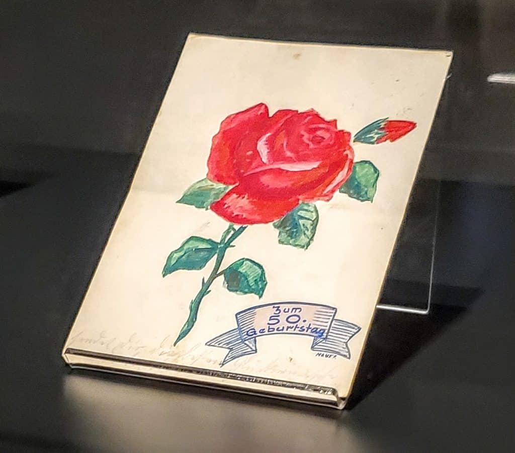 There are additional letters and journals on display from the notes and cards shared with families when the prisoners were allowed to send and receive letters one day each month.