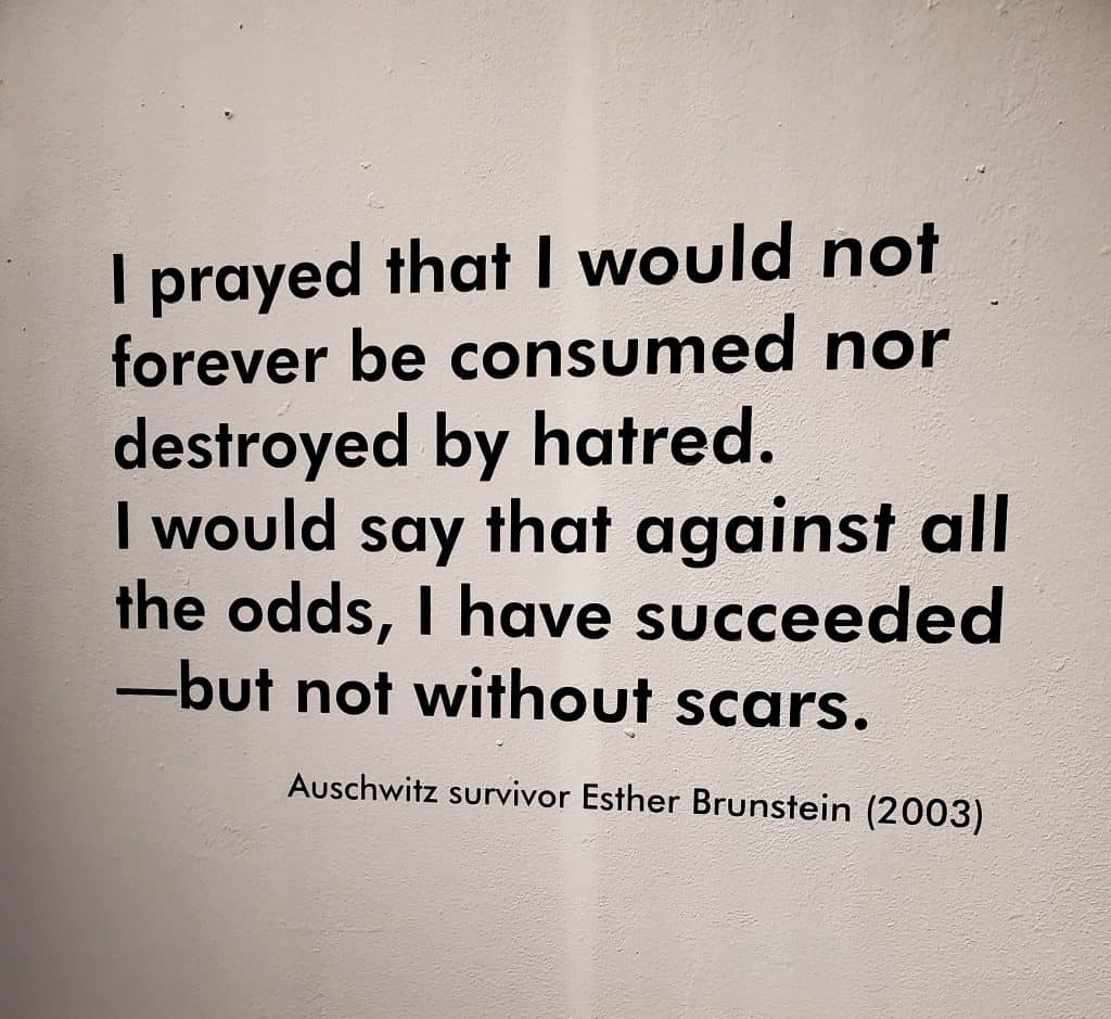 Then the final quote from an Auschwitz survivor as you exit the exhibit, is there to remind us how to live. To learn and remember that we must all do what we can to stand up and protect those who can not protect themselves. The words of how to live life and remind us that so many who came before us did not sacrifice so much so that we could just stand ideally by in our own life.