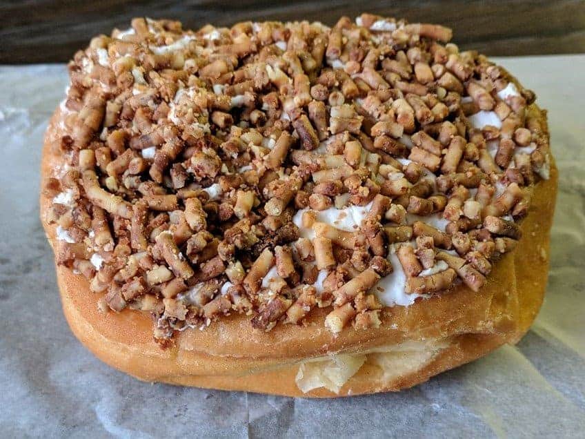 Next up, head to Aggieville for some of the most colorful and creative donuts you will find! If it is a game day, go early or be prepared there will be a line way out the front door! Varsity Donuts has brought flavors like the Maple Bacon Donut. It is a Long John with Maple frosting topped with crumbled bacon! The Larry, a PB and J donut plus so many more! Varsity Donuts offers fun donuts for kids and classic glazed, they have an Opal that is a blueberry donut, it is amazing! Located in one of the older buildings in Aggieville, walking in takes you back in time to your college days. Varsity Donuts also has the Varsity Food Truck that will cover you for your late-night cravings for a hot fresh donut or even something more decadent, mac and cheese grilled cheese sandwiches!