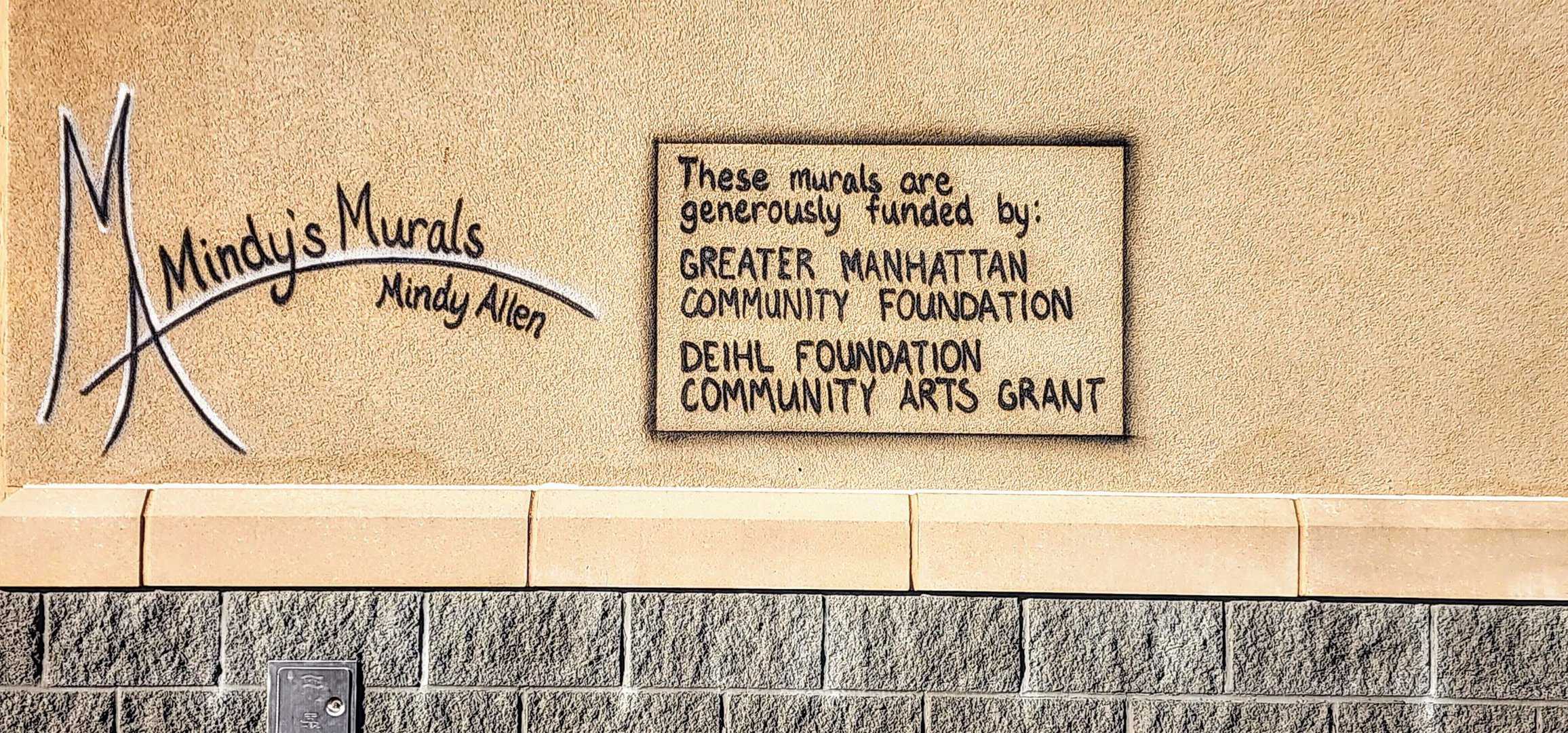Painted by the one and only Mindy Allen from Mindy's Murals in 2023, this mural is a classic, pun intended! Also, please notice the image below. The murals throughout town are funded in a variety of ways. This mural was a project with the Greater Manhattan Community Foundation and the Deihl Foundation Community Arts Grant.