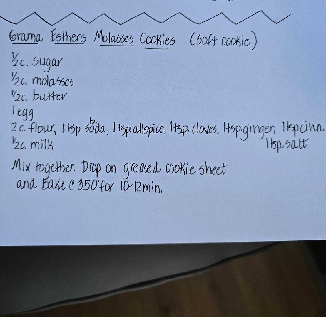 Molasses cookies are quintessentially Christmas. Yet, to my surprise, there wasn’t a single molasses cookie recipe in Grandma’s collection! Maybe it wasn’t her style, or maybe she just preferred other baked goods, I don't know. Either way, my blog felt it needed a molasses cookie recipe. Luckily, my husband’s family recipe box came to the rescue! Years ago, my mother in law hand wrote a collection of recipes into a book and gave it to all the grandchildren for Christmas. We love it and reference it often.