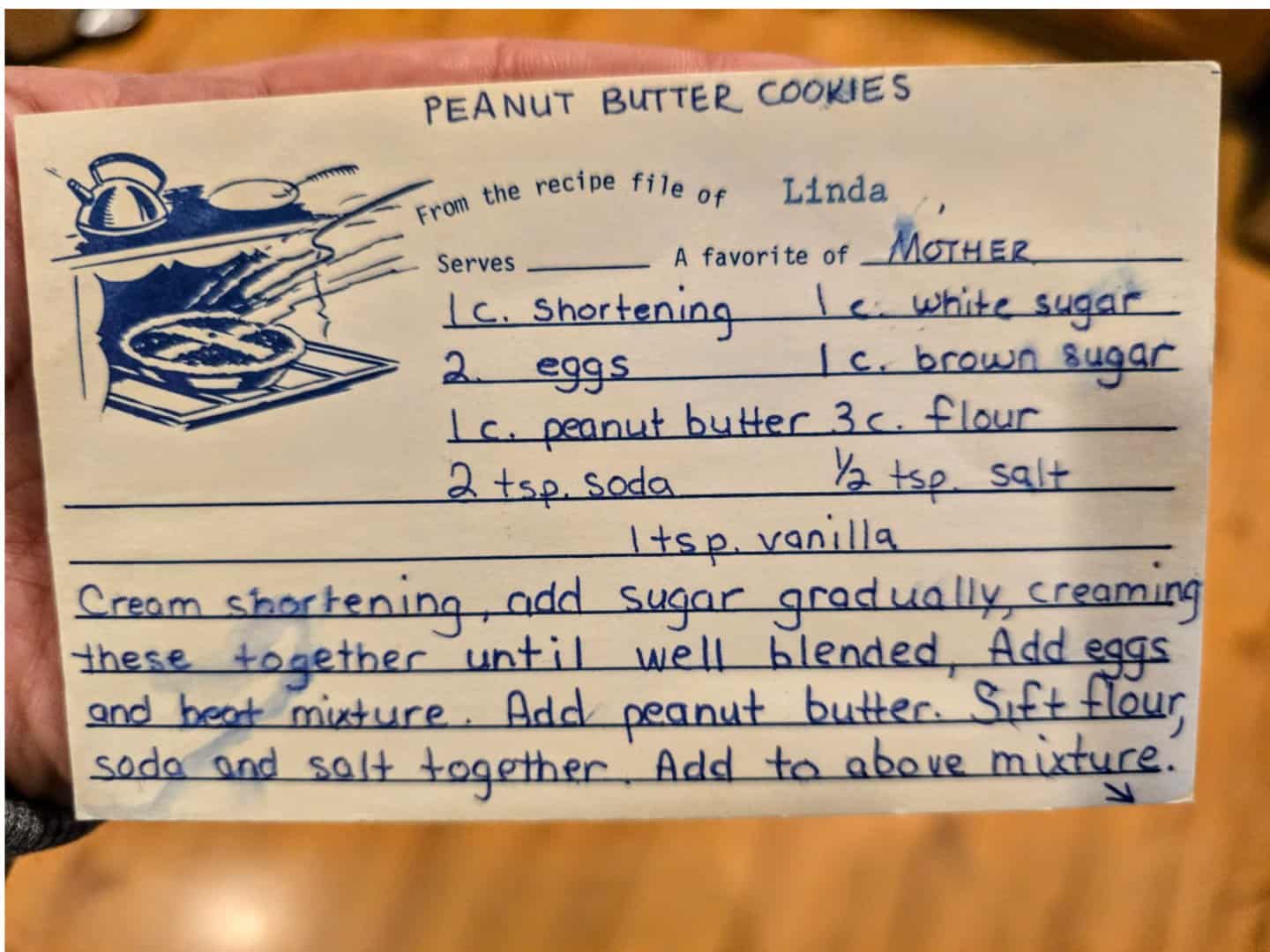 As usual, I read through the recipe and quickly realized that Grandma, once again did not list the baking time for these cookies. I went with 10 min in a 350-degree oven, once I took them out I did a quick drop of the pan on the countertop to help make the cookies a little chewier. Then I let them sit on the baking sheet for 5 min., transferred them to a cooling rack and they were perfect!