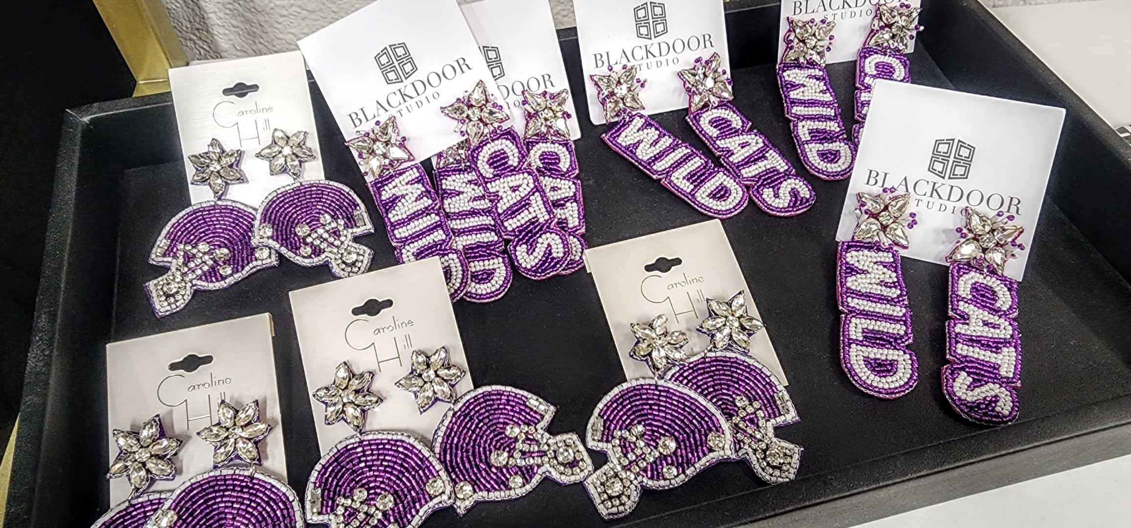 Mesa Collection Boutique has so many options all at really great price points and of course, a ton of fun and unique K-State Gear! Today was my first trip into the store, I couldn't resist an adorable pair of gold earrings that spelled the word, "cats" and a new clear wristlet bag!