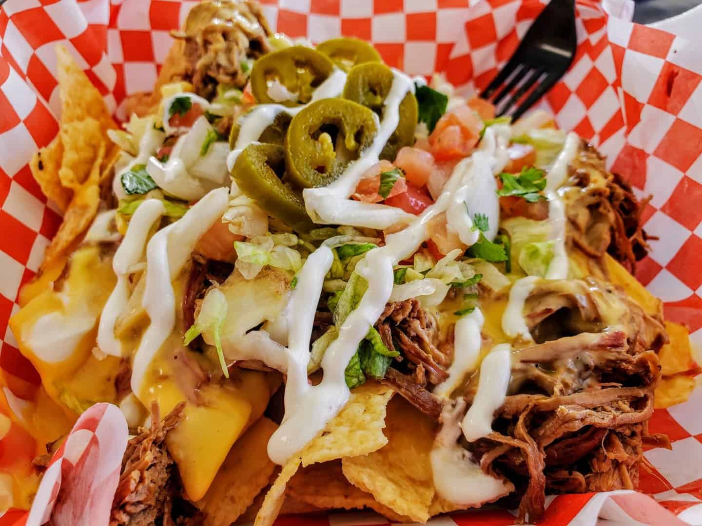 One thing is for sure, no matter the time of year or the weather, this BBQ is totally worth it! Over the years we have ordered I think everything on the menu from Smokin' Willie's and they just get it right every time!!! One of my favorites, well besides the parfait, is their nachos! My nacho protein choice is on constant rotation, but combining two things I love, BBQ and nachos, into one is frankly what dreams are made of! These pulled pork nachos are huge and most likely could be shared by two people, but that is not how it works in our house! LOL